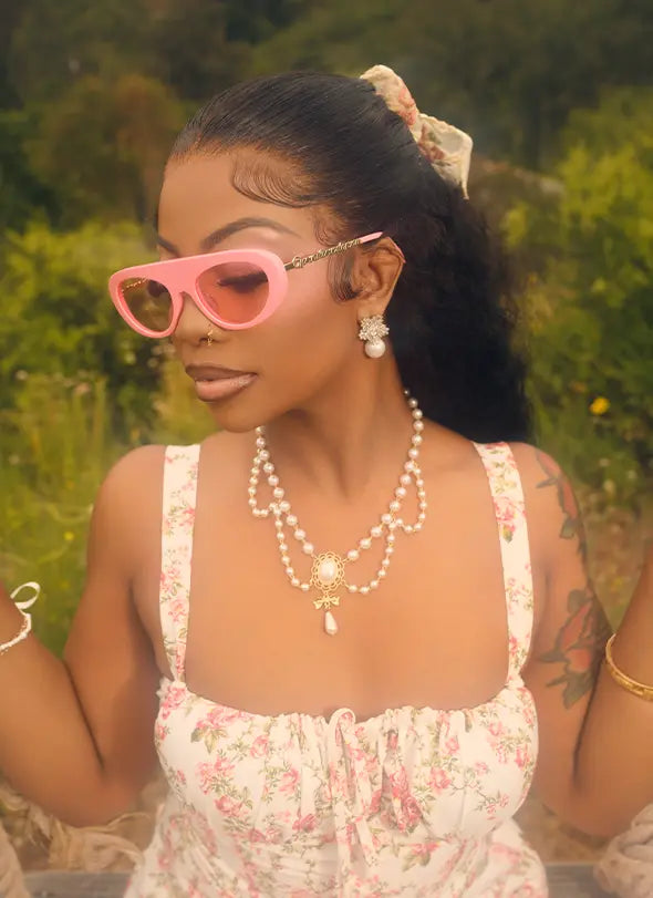 Bodacious features a large frame with a cutout metal logo design on the temples.