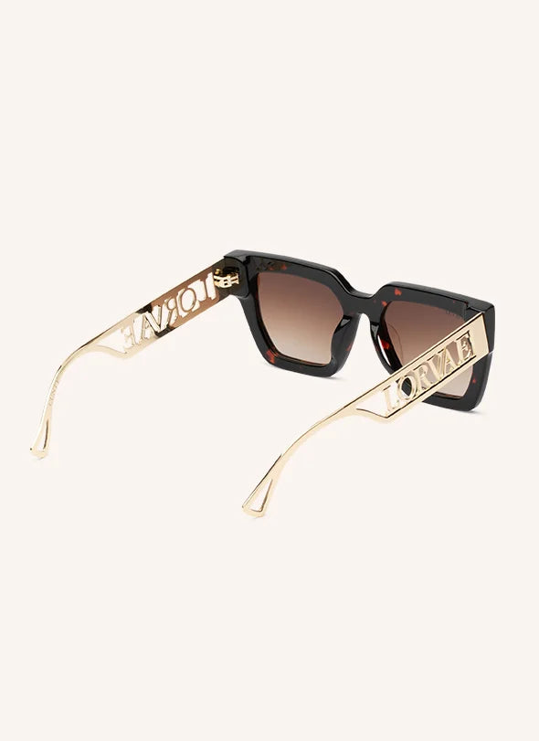 Lorvae logo cut-out crafted from high-quality gold metal.