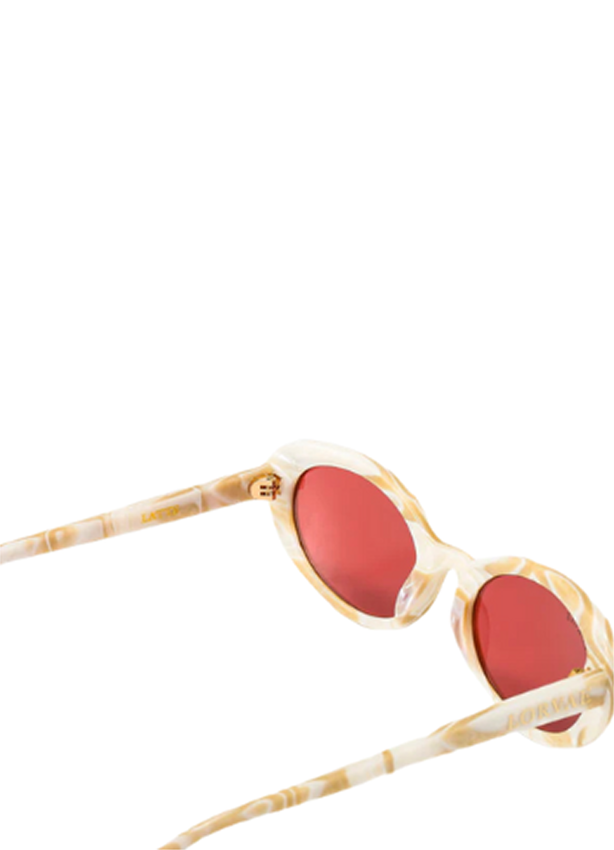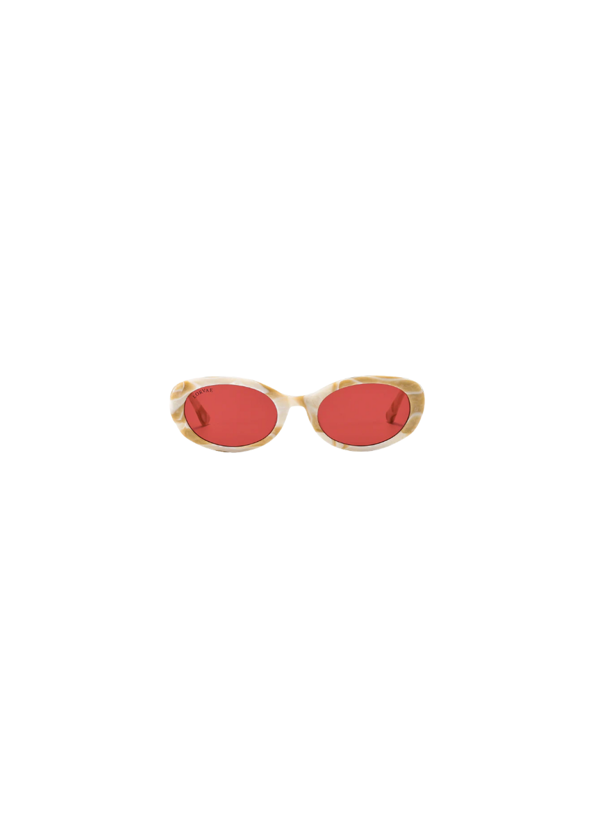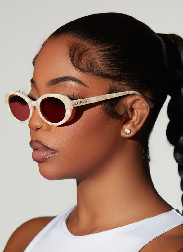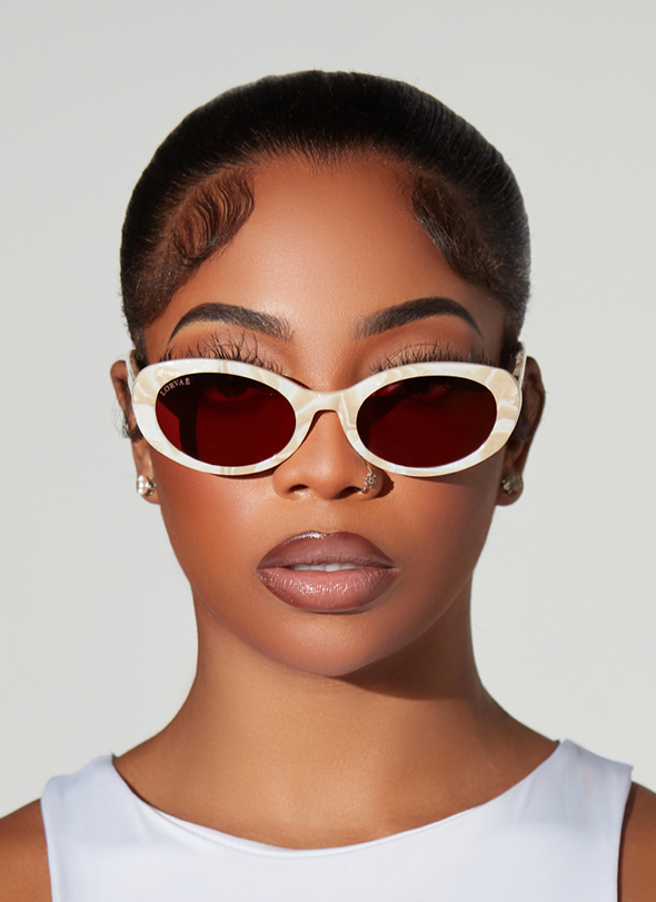 Retro and yet so modern. LATTE’s oval shape and bold burgundy lenses are inspired by the 60’s while the swirl marble pattern and slickness of the temples fits today’s current aesthetic.