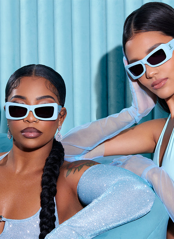 Be lowkey in this pastel baby blue pair of shades. Its sporty but casual shape, narrow to wide rectangular frames and silver metalwear makes it the perfect pair to stunt on the low low.