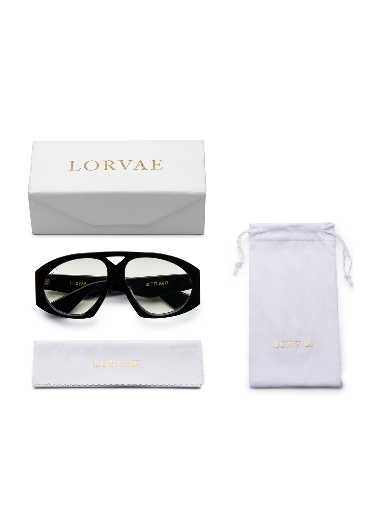 The sharp angles add structure to the face while the bold temples anchor the look with Lorvae’s signature detail. This is the pair you reach for when you don’t need color to be seen.